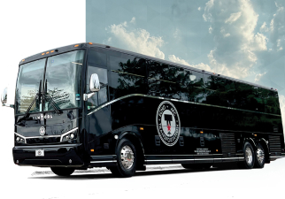 A great option for groups of up to 34 or 40 with 110v outlets, onboard restrooms, and overhead storage.